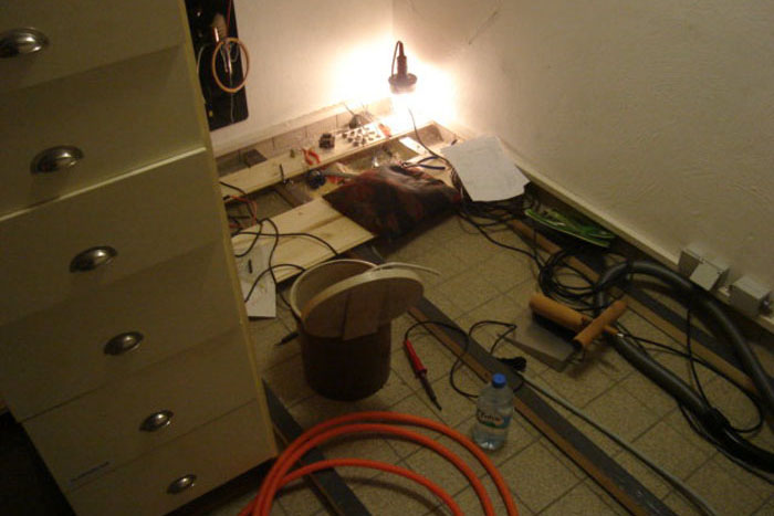 Momentan sind Kontrollraum und der angrenzende live-Raum das Herz des Studios. Man kann jetzt vom Regieraum in den Aufnahmeraum winken (dank großer Scheibe). Nebenan befinden sich weitere Kellerräume in denen Verstärker ausgelagert werden können.